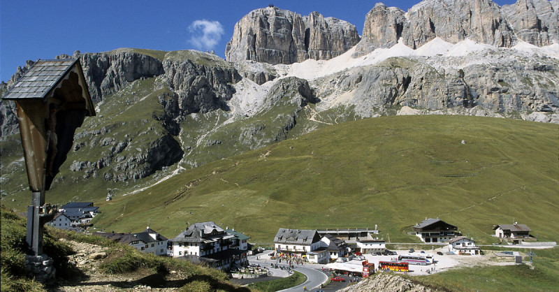 Albergo al passo Pordoi, valico alpino di straordinaria bellezza, nonchè zona turistica transregionale, al confine tra Veneto, Trentino e Alto Adige, nota anche come “Sellaronda” o “giro dei quattro passi”.