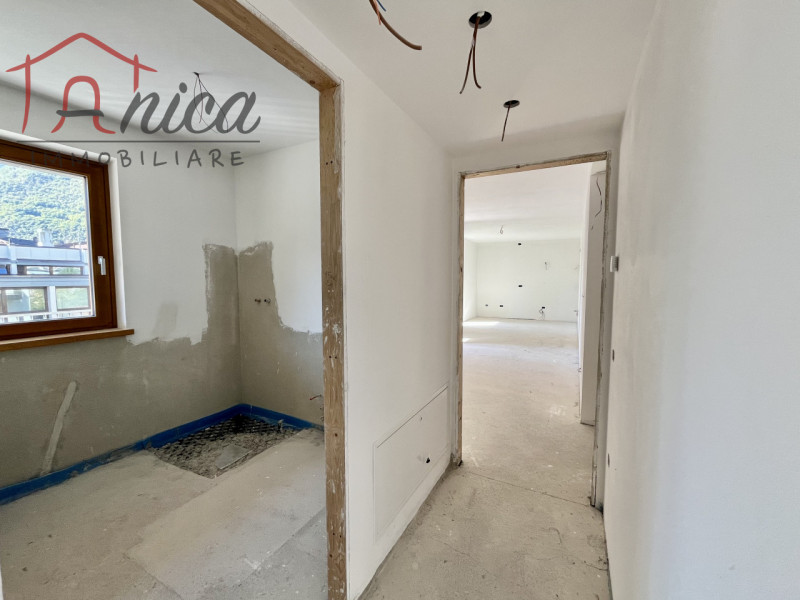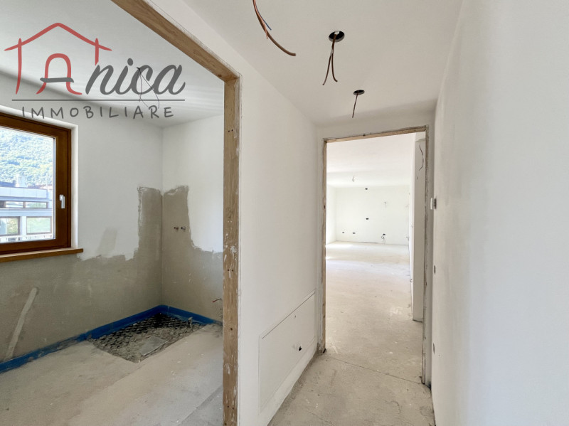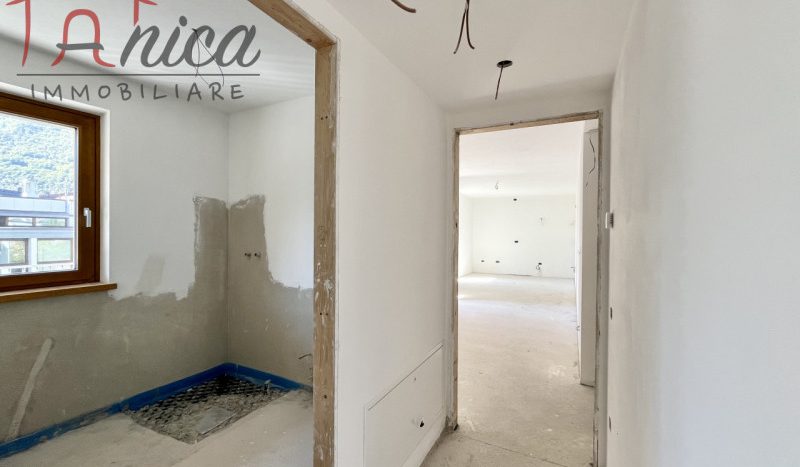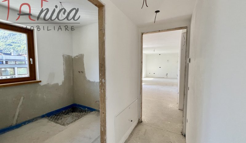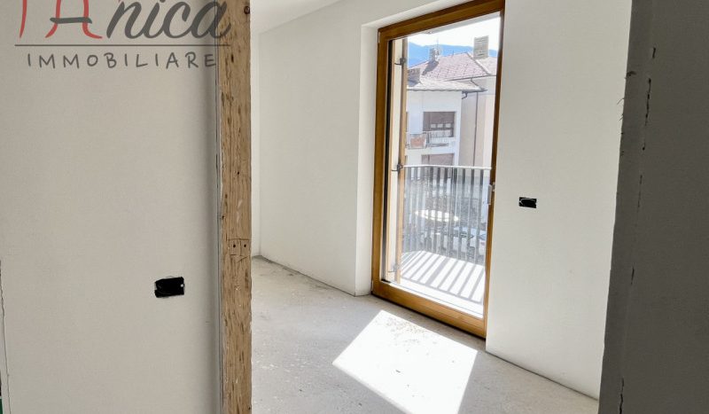 ALDENO – In nuova costruzione di classe energetica A + comoda ai servizi, vendiamo appartamento sito al secondo piano con ascensore, esposto Sud-Est composto da: ingresso, soggiorno con angolo cottura, due stanze da letto (una matrimoniale e una media), due bagni (di cui uno finestrato) e due ampi balconi abitabili. Scelta delle finiture secondo capitolato. Possibilità di acquisto di garage doppio con spazio per cantina a 33.000 euro. Riscaldamento e raffrescamento centralizzati a pavimento con contacalorie, serramenti in triplo vetro in legno e predisposizione per la centralina domotica. La costruzione dispone di pannelli solari, fotovoltaici e cappotto.