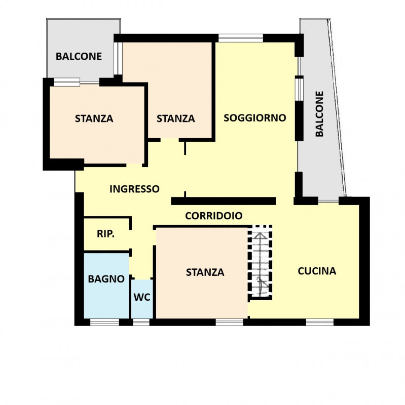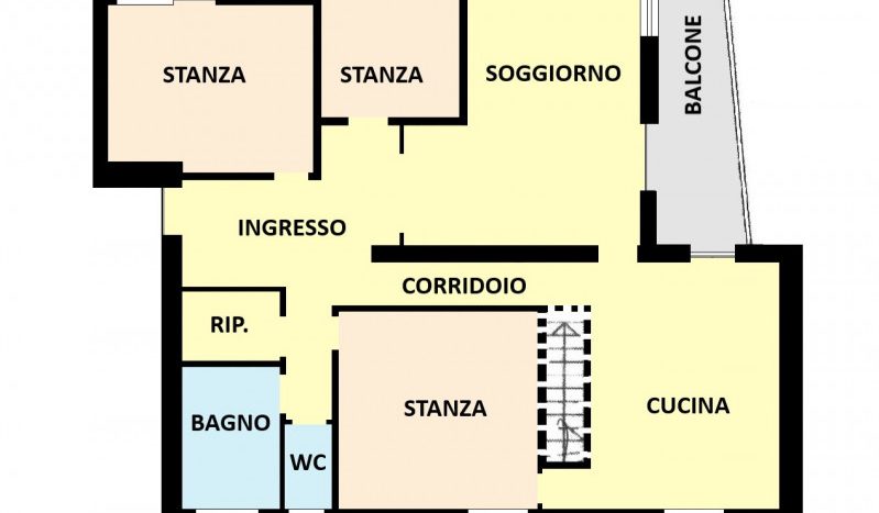ELENCO VANI: ingresso/atrio, 3 camere da letto, salone, cucina abitabile, 2 balconi, un bagno finestrato, WC finestrato, un ripostiglio , e un garage.