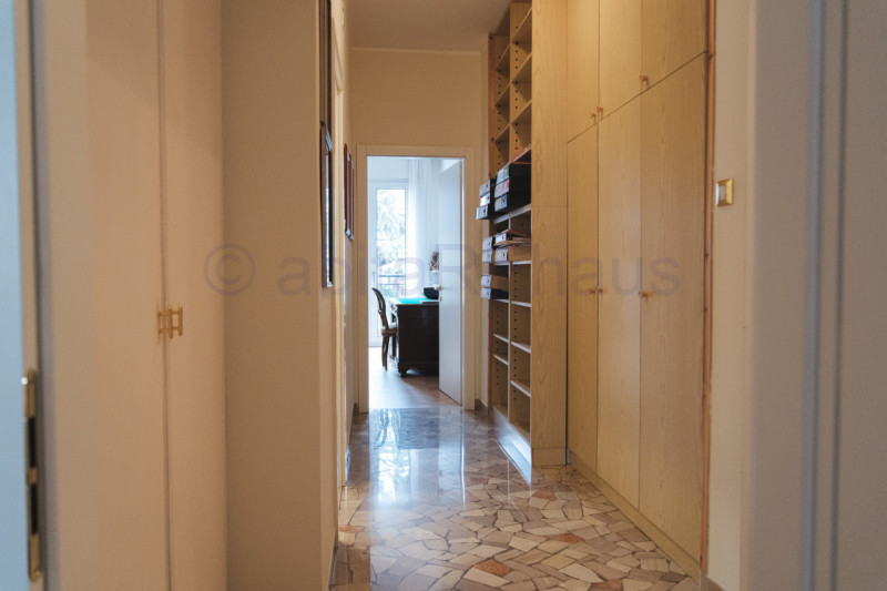 Die Wohnung verfügt außerdem über ein modernes, kürzlich renoviertes Badezimmer mit Fenster und einen praktischen Abstellraum im zentralen Flur. Der Flur des Schlafbereichs beherbergt außerdem einen weiteren Einbauschrank.