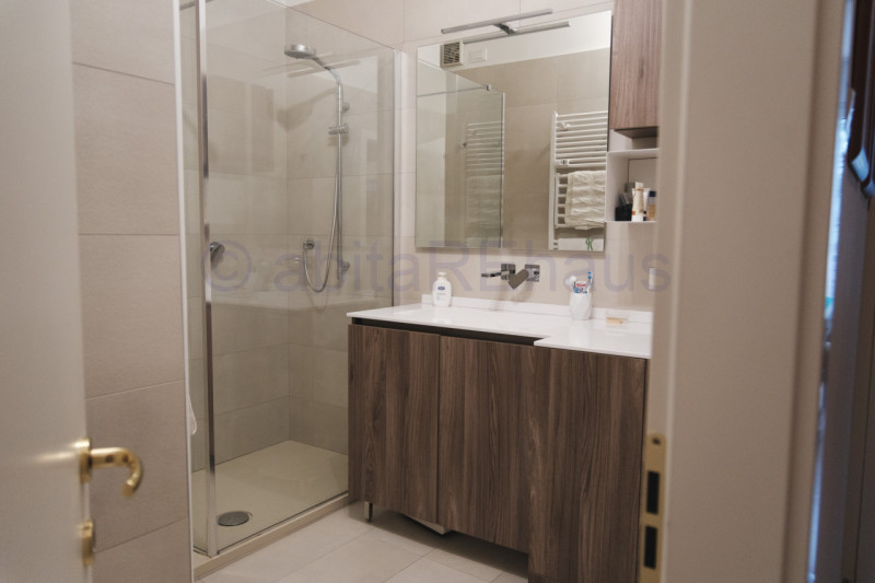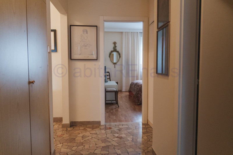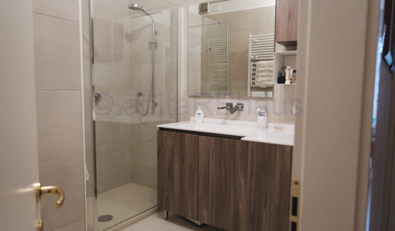 L’appartamento dispone inoltre di un bagno finestrato dal taglio moderno e ristrutturato da poco ed il pratico ripostiglio nell’ atrio centrale. Il disimpegno della zona notte poi, ospita anche un ulteriore armadio a muro.