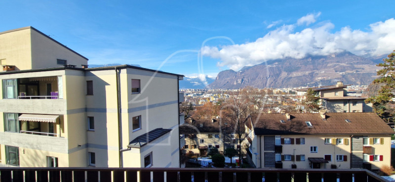 Die Immobilie verfügt über einen einladenden Eingangsbereich, zwei geräumige Schlafzimmer, von denen eines Zugang zu einem eigenen Balkon bietet, ein tagesbelichtetes Badezimmer sowie einen hellen Wohnbereich mit großer Fensterfassade. Von hier aus gelangt man auf einen weiteren, ca. 13,5 m² großen Balkon, der einen freien und beeindruckenden Blick auf die Berge und die Stadt Bozen eröffnet.
