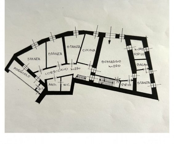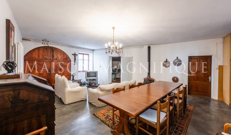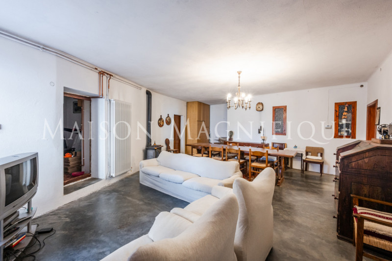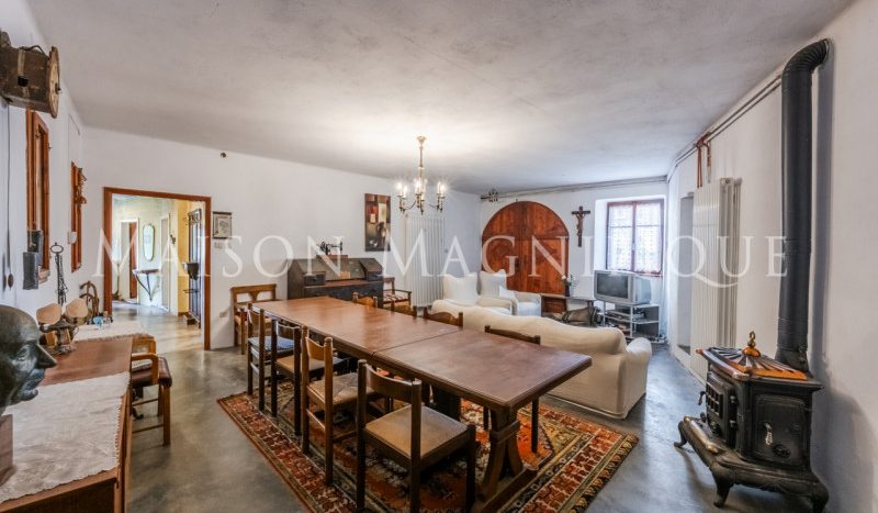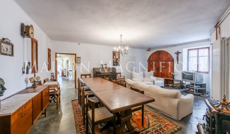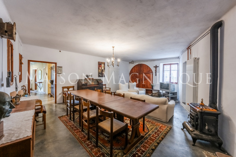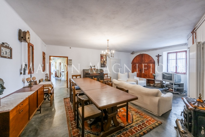 All’interno troviamo ambienti generosi: al piano terra una grande zona giorno accogliente e conviviale con stufa a legna,; cucina abitabile separata, quattro camere da letto luminose, due bagni ed un ripostiglio. Un antico balcone loggiato che si affaccia sulla corte privata completa il piano principale.