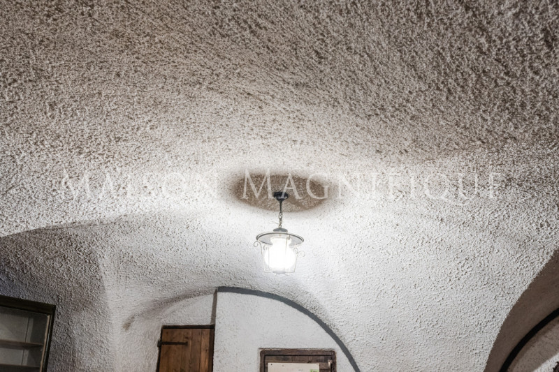 Al piano seminterrato – accessibile sia dall’interno che dal cortile – vi attende una taverna tipica dalle volte in pietra dotata di camino antico e magazzini spaziosi.