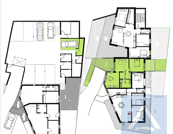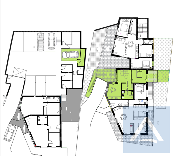 Garagenplätze sind separat zum Preis von 25.000 € erhältlich.