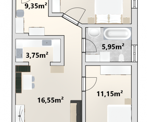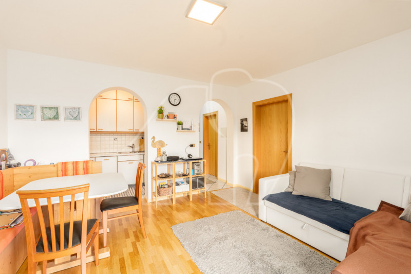 Die Wohnung überzeugt durch ein großzügiges Wohnzimmer, das direkten Zugang zum Balkon bietet und viel Platz zum Wohnen und Entspannen schafft. Ergänzt wird der Wohnbereich durch eine separate, kompakte Küche.