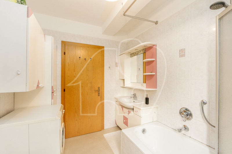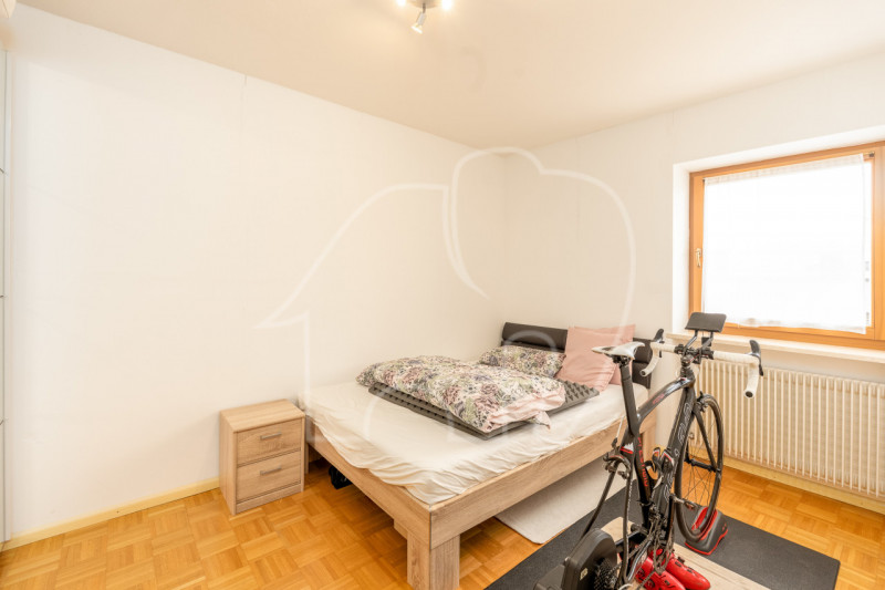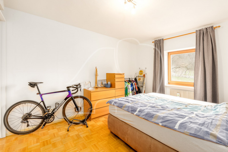 Zwei Schlafzimmer, beide mit Fenster, bieten flexible Nutzungsmöglichkeiten als Elternschlafzimmer, Kinderzimmer oder Büro. Abgerundet wird das Raumangebot durch ein großes Badezimmer mit Badewanne. Zur Immobilie gehören eine Garage sowie ein Autostellplatz, die im Angebot inkludiert sind.