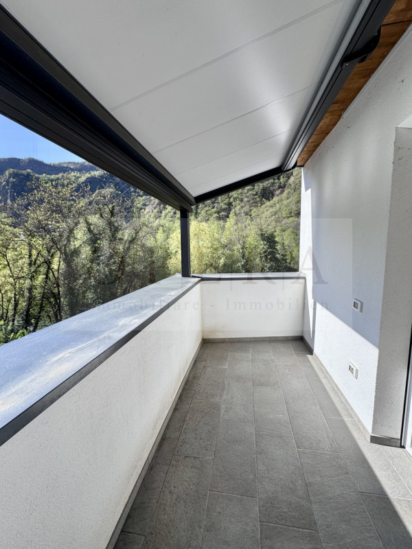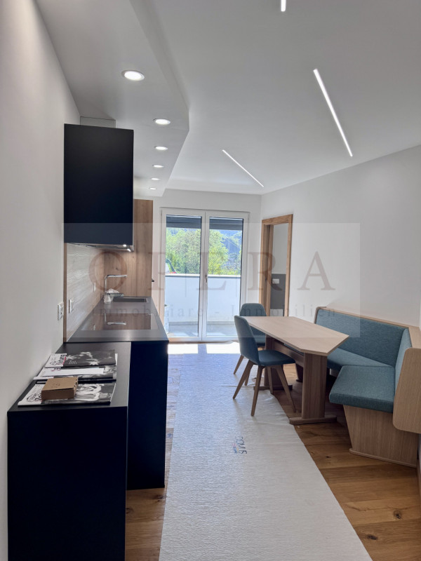 Prato Isarco: nuovo bilocale con terrazza, arredato, garage doppio compreso, pronta consegna.