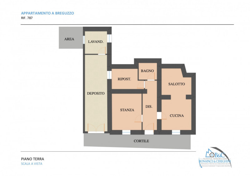 L’immobile è composto da ingresso, cucina abitabile con zona giorno, ampia camera matrimoniale, spazioso ripostiglio e bagno.