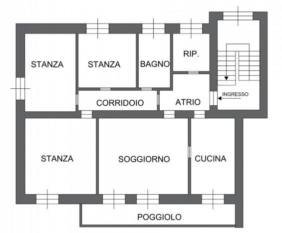 L’appartamento si distingue per gli spazi generosi e ben distribuiti: l’ingresso conduce a una cucina separata e a un ampio soggiorno particolarmente luminoso, arricchito dall’accesso al balcone. La zona notte offre tre camere da letto di comode dimensioni, ideali per una famiglia o per chi necessita di uno studio, oltre a un bagno finestrato e a un pratico ripostiglio che aggiunge funzionalità agli ambienti.