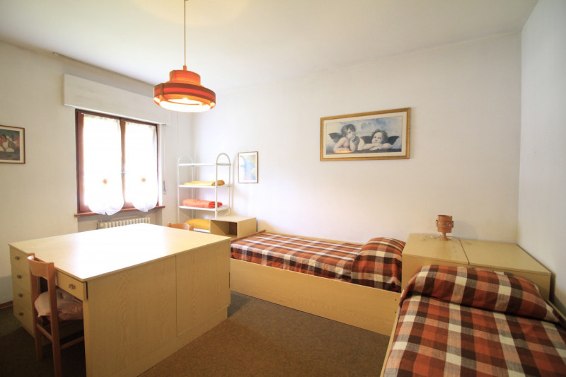 A Tione, in via Circonvallazione, proponiamo in affitto appartamento di grandi dimensioni, luminoso e ben esposto. L’immobile è composto da ampio soggiorno con accesso al balcone, cucina separata, due stanze matrimoniali, una stanza singola e due bagni, di cui uno con balconcino. Completa gli spazi un garage a piano terra di 16 mq.
