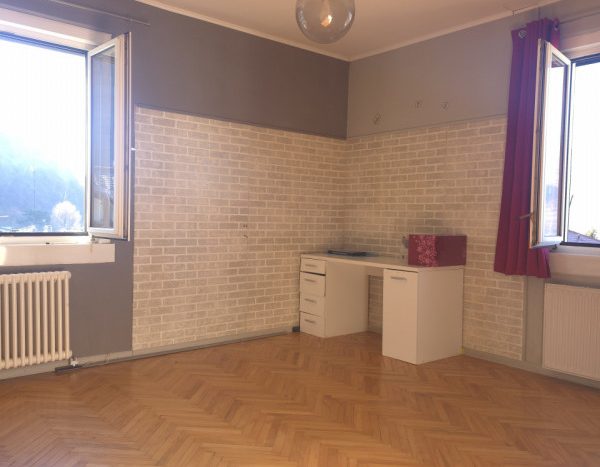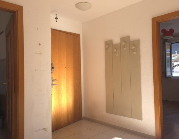 Mit einer Katasterfläche von 94 m² und einer Wohnfläche von 74 m² bietet die Immobilie einen großzügigen Eingangsbereich, ein helles Wohnzimmer mit Zugang zu einem privaten Balkon und eine sehr geräumige Wohnküche mit freiem Blick auf das darunter liegende Tal. Zwei Doppelzimmer sorgen für Komfort, während das Badezimmer mit Fenster die Funktionalität der Wohnung ergänzt.