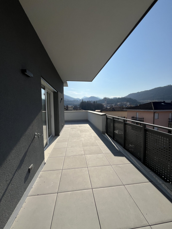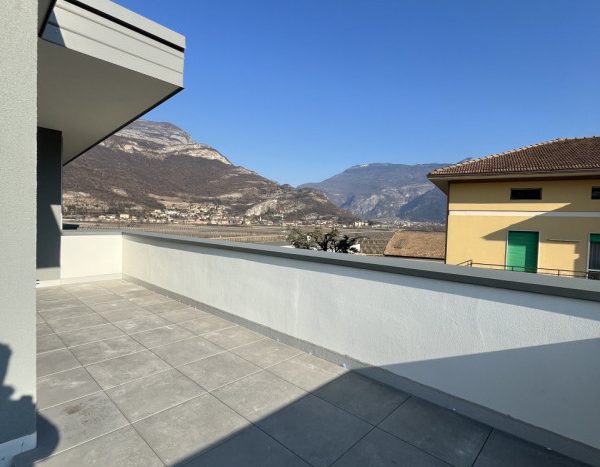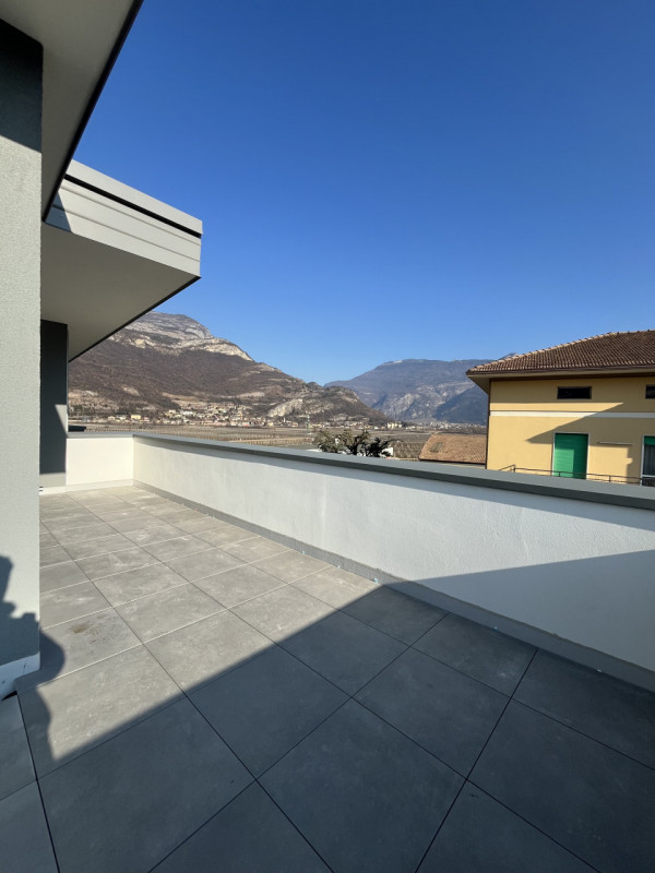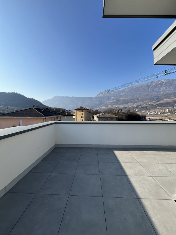 In zona soleggiata a Volano proponiamo in vendita in nuova realizzazione in Classe A+ splendido attico trilocale con terrazzo di 80 metri quadri a circondare tutto l’appartamento. L’immobile è composto da ingresso luminosissimo soggiorno- cucina, stanza singola, bagno finestrato, ripostiglio con attacco lavatrice e asciugatrice, stanza matrimoniale con zona cabina armadio.