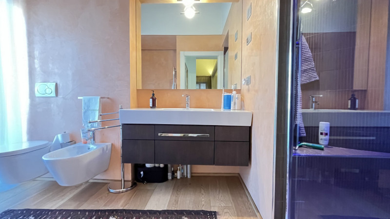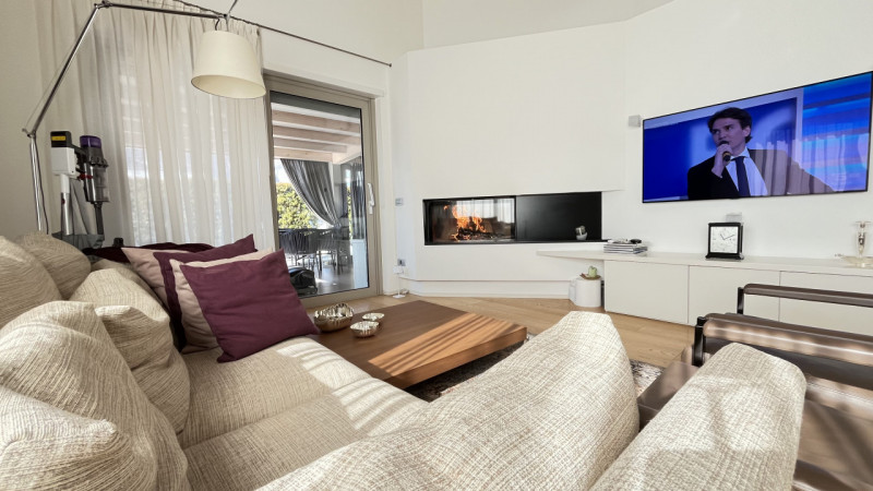 Dotazioni tecnologiche avanzate come riscaldamento a pavimento, aria condizionata canalizzata, impianto domotico integrato (filodiffusione audio e controlli a distanza), sistema antifurto rendono questa soluzione unica nel suo genere. Ampie superfici esterne assicurano relax totale; completano la proprietà garage doppio automatizzato, cantina privata e posto auto esterno.