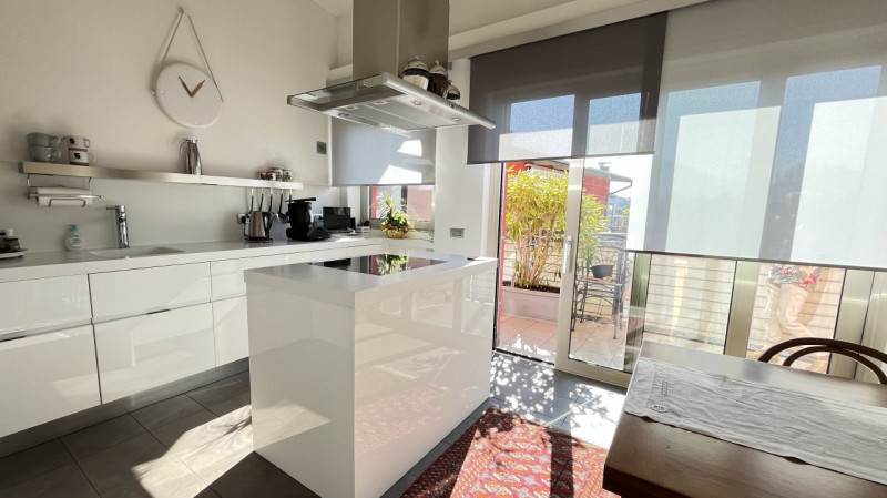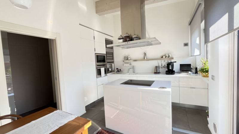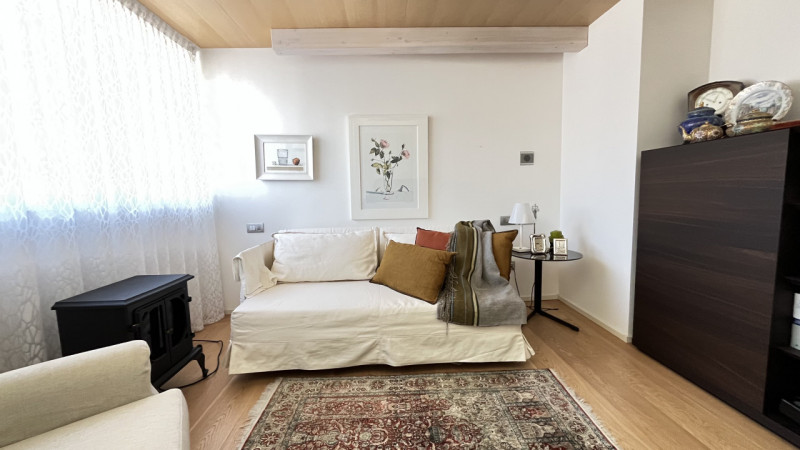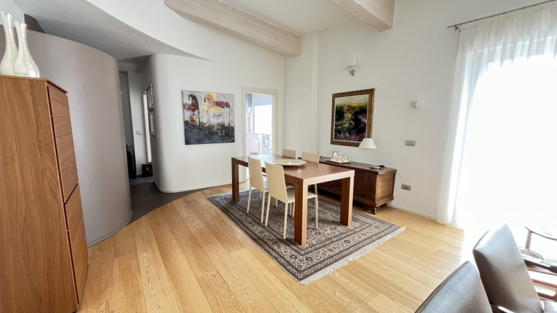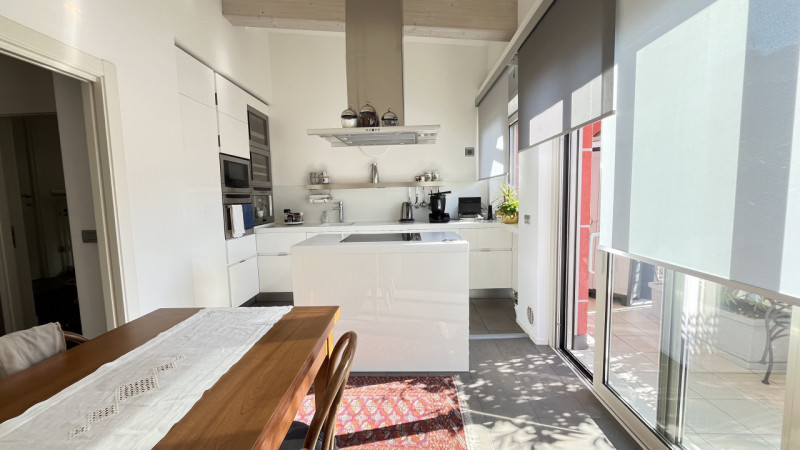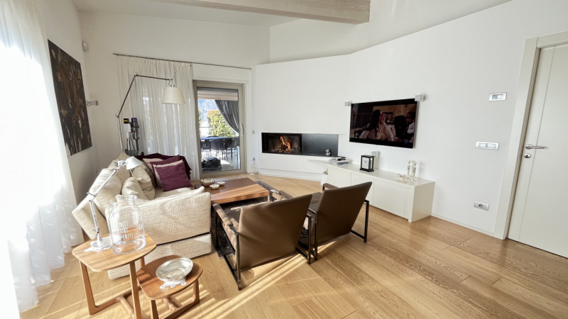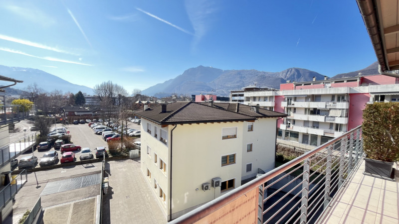 In vendita a Trento, nella ricercata zona dei Solteri, proponiamo un attico esclusivo di 160 mq situato al terzo ed ultimo piano di una palazzina moderna e recente. L’immobile si distingue per la massima privacy e l’ottima esposizione che garantisce ambienti luminosi durante tutto il giorno. L’accesso all’attico con ascensore è una caratteristica chiave di prestigio che assicura comfort e accessibilità universale. Gli spazi interni sono ampi e raffinati: dall’elegante atrio d’ingresso si accede ad una zona giorno molto spaziosa impreziosita da soffitti con travi a vista, pavimenti in legno chiaro e grandi vetrate che donano luce naturale. Il soggiorno è arricchito da un moderno camino a parete e affaccia su una splendida veranda coperta ideale per momenti conviviali all’aperto.