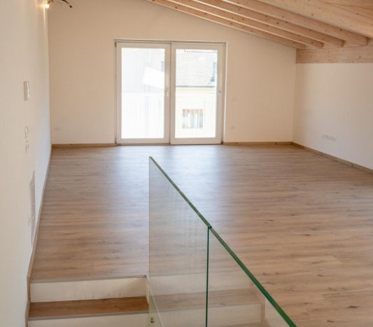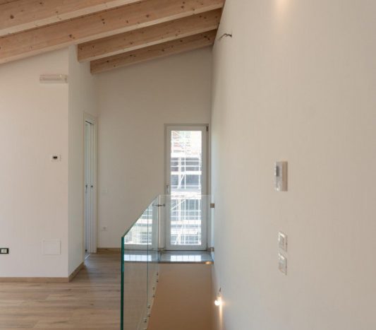 Occupa il secondo e terzo piano, l’ultimo, ed è costituito da una grande matrimoniale(di oltre 15mq)con poggiolo, due singole ed un bagno al primo livello ed una magnifica e ampia zona giorno, con bagno, poggiolo e terrazzino a piano attico, luminosa e con vista aperta e panoramica sul monte Bondone e la Paganella.