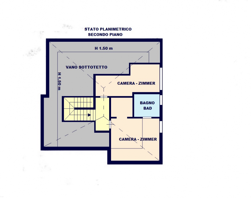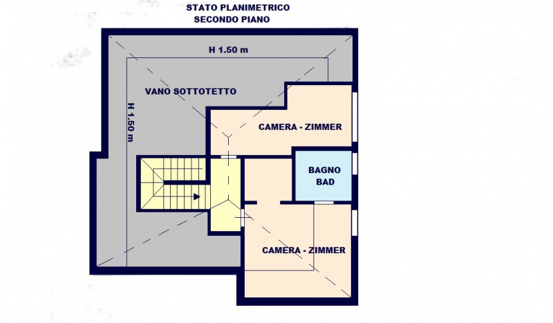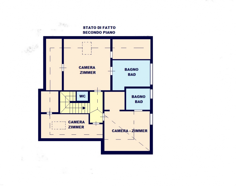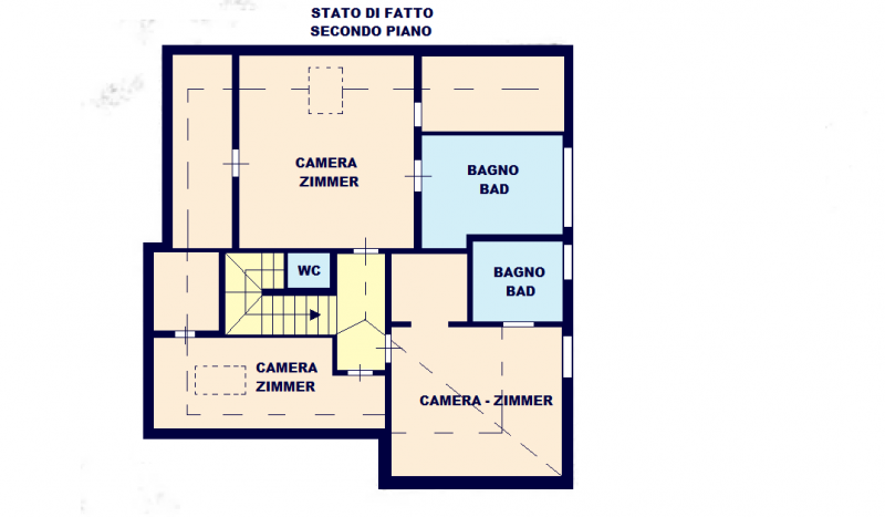 Salendo le scale interne si accede alla zona notte cosi distribuita: