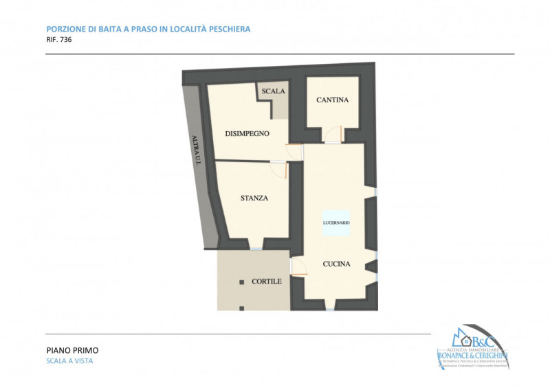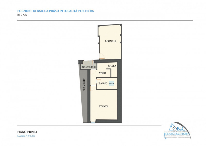 La baita si sviluppa su due piani con una superficie totale di circa 122 mq ed offre ampi spazi esterni privati che si estendono per oltre un ettaro, suddivisi equamente fra bosco rigoglioso e pascolo aperto – un vero sogno per gli amanti della natura e degli animali. Recentemente ristrutturato parzialmente negli anni ’90 mantenendo il suo fascino originale dei primi del Novecento, l’immobile comprende al piano terra: casinello, cantina spaziosa, stanza versatile e disimpegno; mentre al primo piano troviamo un accogliente atrio, bagno funzionale, altra camera da letto luminosa insieme alla legnaia utile e ripostiglio.