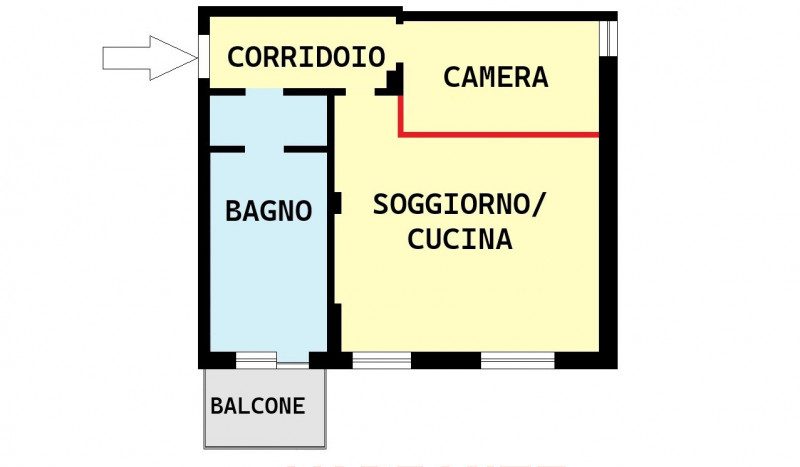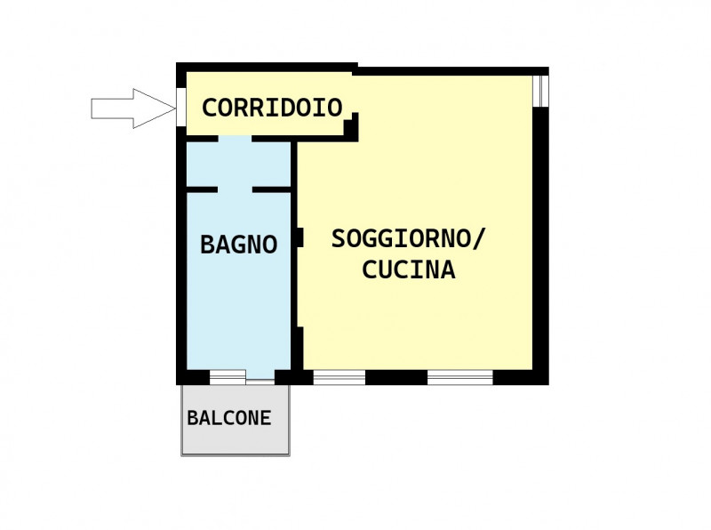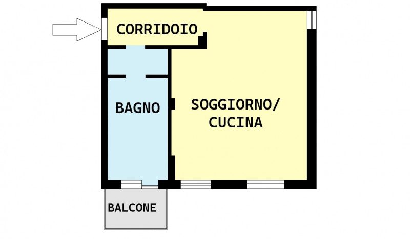 ELENCO VANI: L’appartamento è composto da soggiorno con cucina ,un bagno finestrato con anti-bagno ,e un balcone.