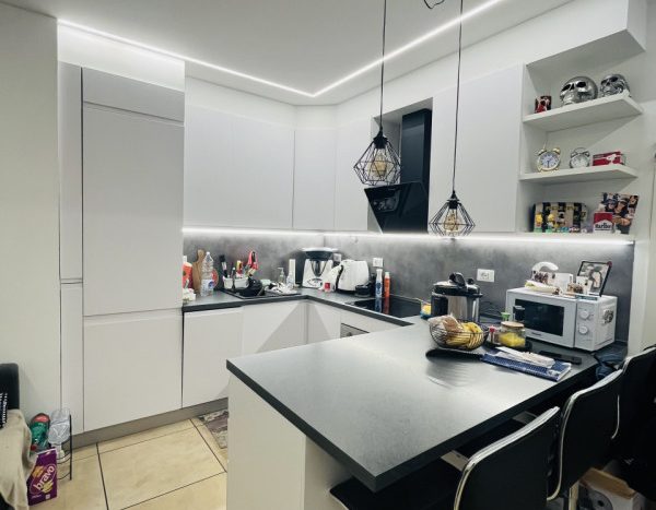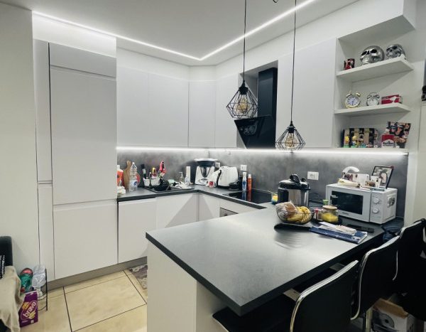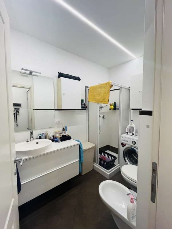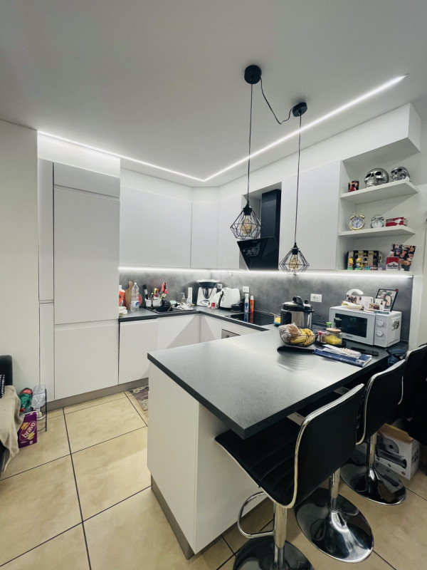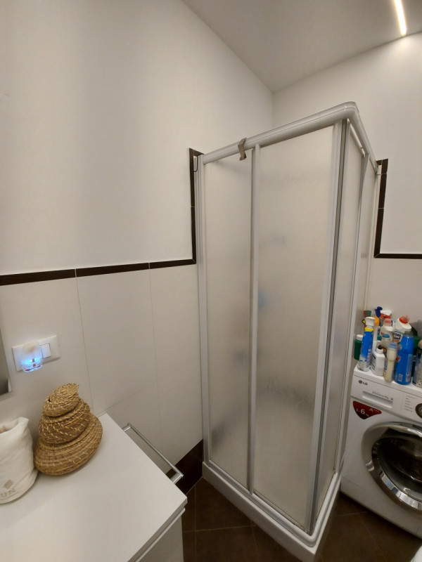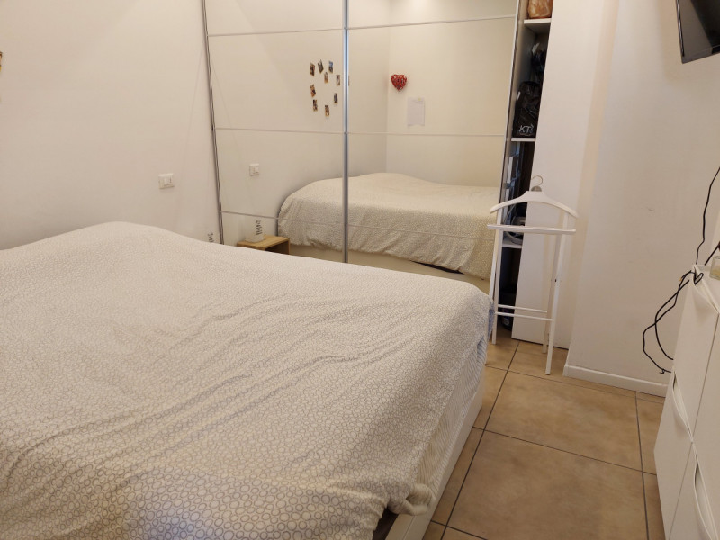 Composto da ingresso, ampio bagno cieco con lavatrice, camera con letto contenitore e grande armadio, disbrigo con libreria, soggiorno-cucina dotato di cucina su misura con penisola divano e mobile tv, piano induzione, lavastoviglie e uscita su balcone. Dotato di aria condizionata.