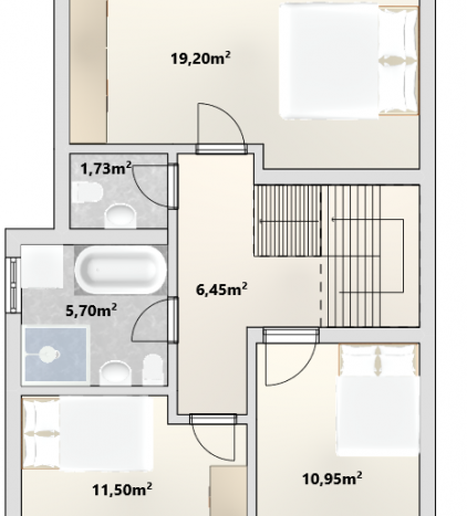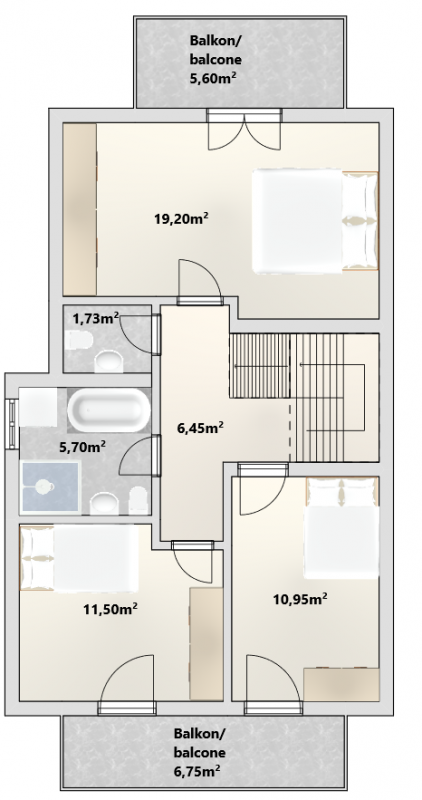 Die Immobilie besteht aus vier Schlafzimmer, eine Küche sowie ein Wohnzimmer, 2 Badezimmer mit Fenster und ein WC. Zwei Balkone und ein großzügiger Garten bieten einen angenehmen Rückzugsort und lädt zum Entspannen ein.