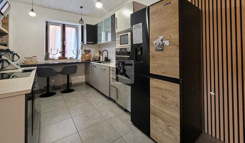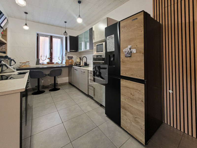 Al primo piano luminosa zona giorno di metratura, cucina abitabile, zona lavanderia e bagno finestrato.