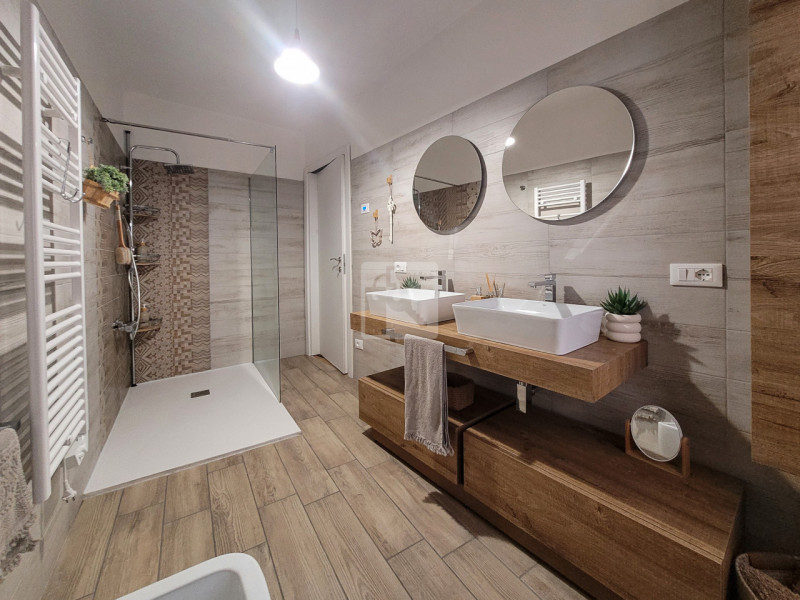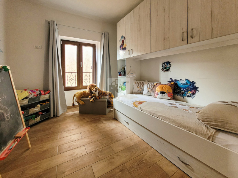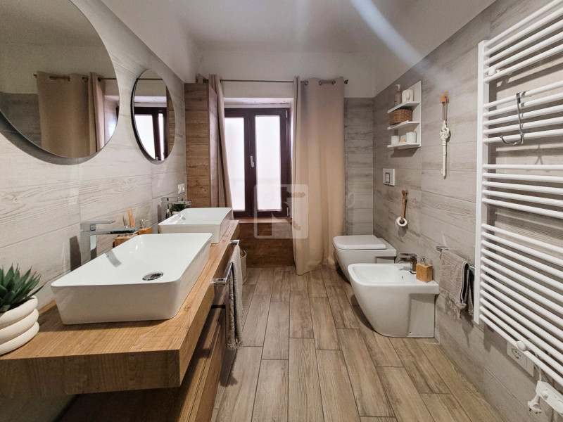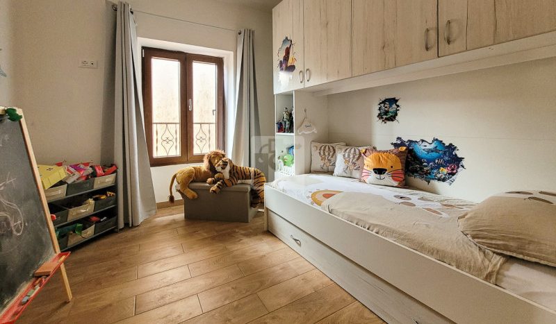 Al secondo piano due camere matrimoniali, di cui una dotata di cabina armadio, camera singola, ripostiglio e bagno padronale anch’esso finestrato.