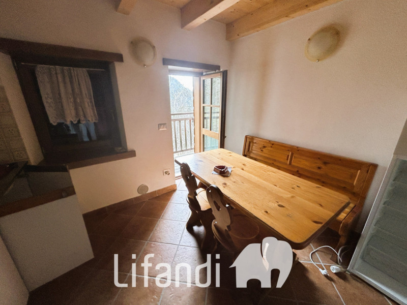La casa si sviluppa su tre piani: al piano terra troviamo due cantine e un posto auto; al primo piano, un appartamento bilocale da ristrutturare; e al secondo piano, un appartamento ristrutturato nel 2019, composto da una stanza, cucina-soggiorno, bagno e un soppalco che può essere sfruttato come ulteriore stanza.