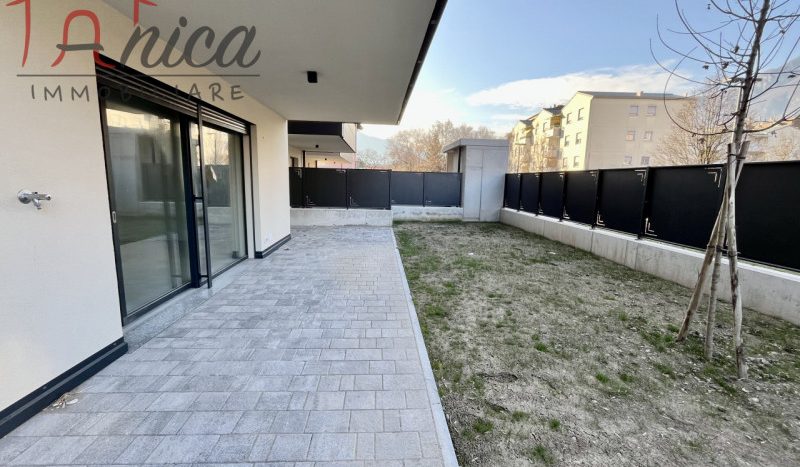 CLARINA – In nuova costruzione di classe energetica A + vendiamo appartamento sito al piano terra con ampio giardino, composto da: ingresso, soggiorno con angolo cottura, tre stanze da letto, disbrigo e due bagni (di cui uno finestrato). L’accesso all’esterno è possibile sia dalla zona giorno che dalla zona notte. La superficie terrazzata esterna è pari a circa 80 mq + ulteriori 173 mq di giardino. Esposizione NORD-EST-OVEST. Scelta delle finiture comprese nel prezzo, come da capitolato. Possibilità di acquisto di posto auto esterno a 20.000 euro e/o di garage con cantina a partire da 42.000 euro con recupero fiscale.