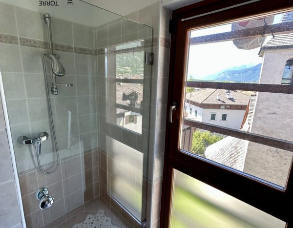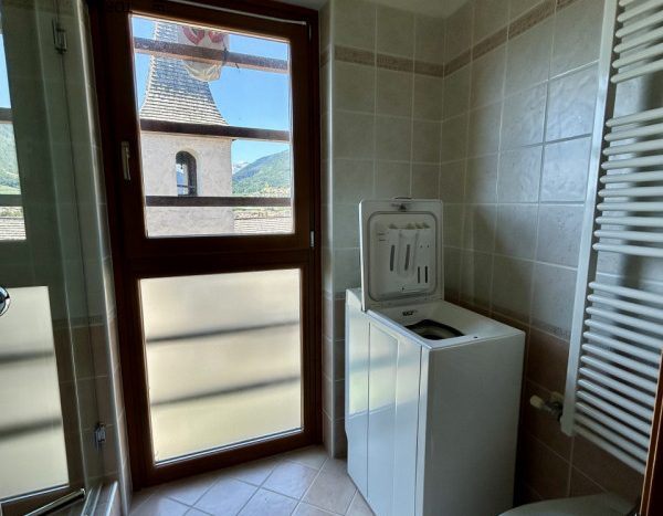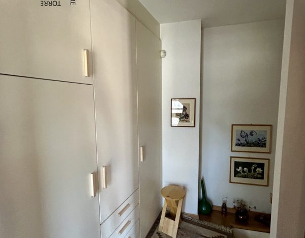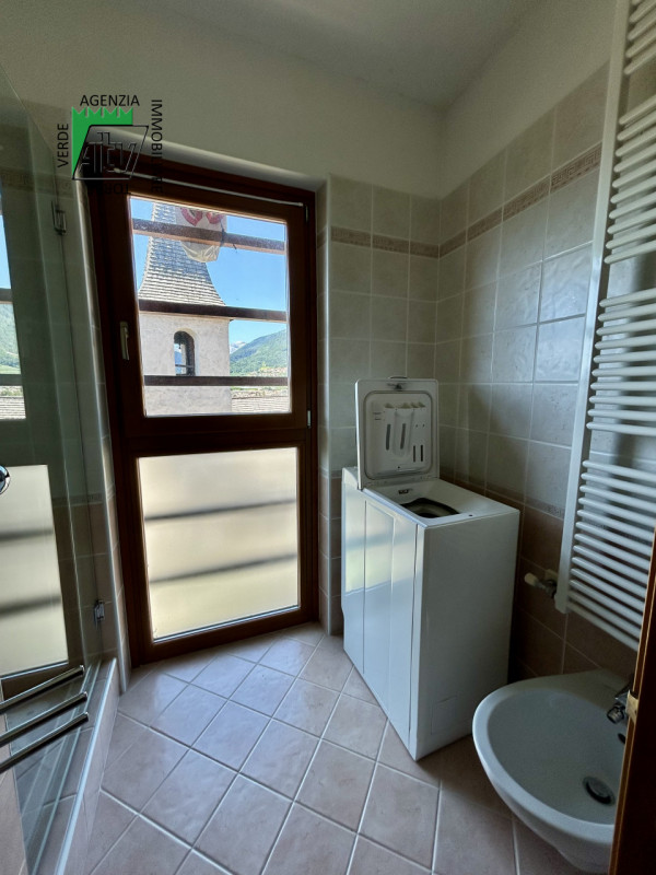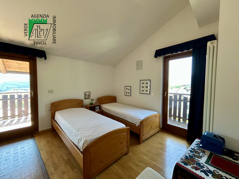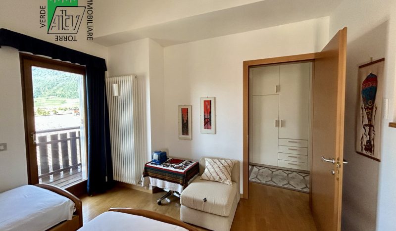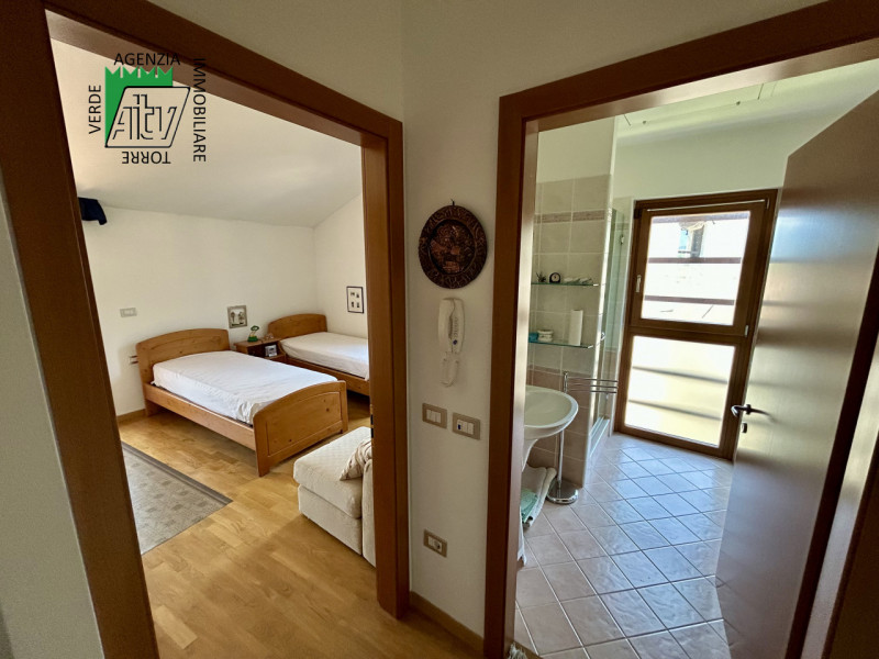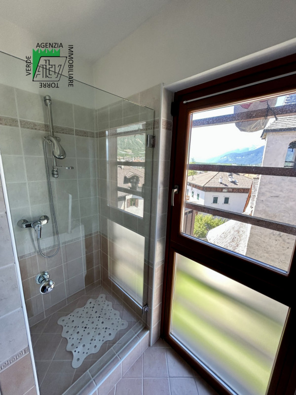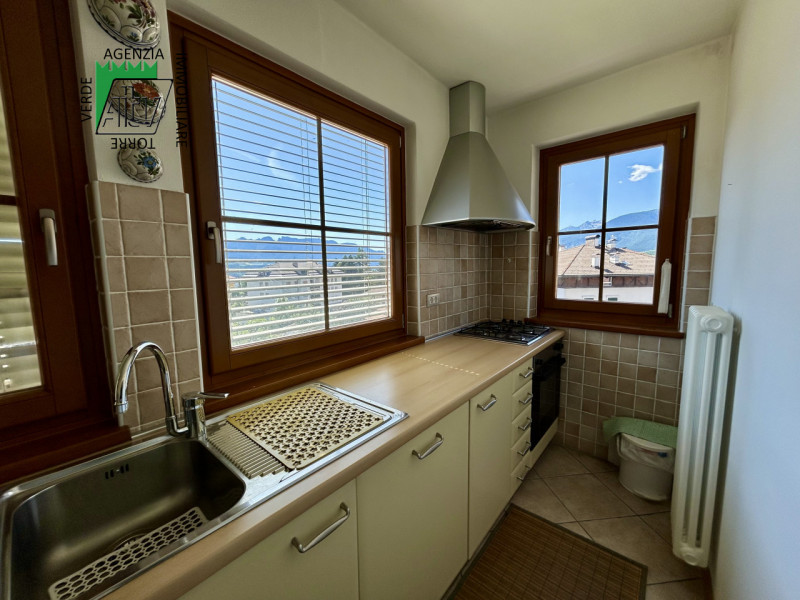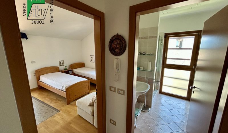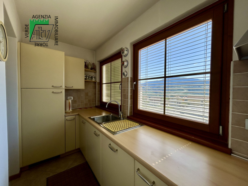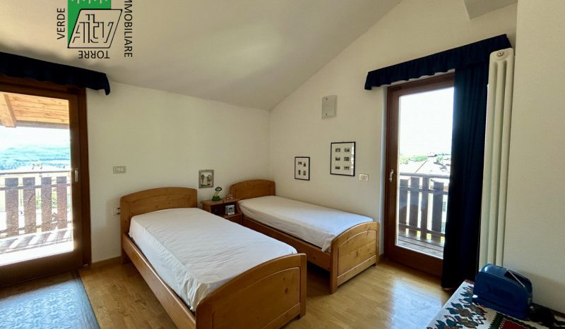 È composto da : soggiorno con cucina; al piano superiore si trova la zona notte con antibagno, bagno finestrato, camera matrimoniale e un ampio balcone esposto a sud-est. È presente inoltre un comodo vano a sottotetto e a piano terra cantina. L’appartamento viene venduto parzialmente arredato. Riscaldamento autonomo.