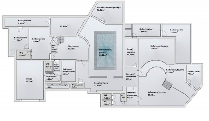 Una piscina coperta sotterranea, una taverna di dimensioni straordinariamente generose e gli estesi spazi esterni di circa 5.000 m² rendono questa proprietà un luogo ideale sia per il relax sia per la convivialità. Qui si fondono armoniosamente piacere, benessere, privacy e qualità della vita, creando un’esperienza abitativa di assoluto livello.