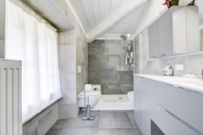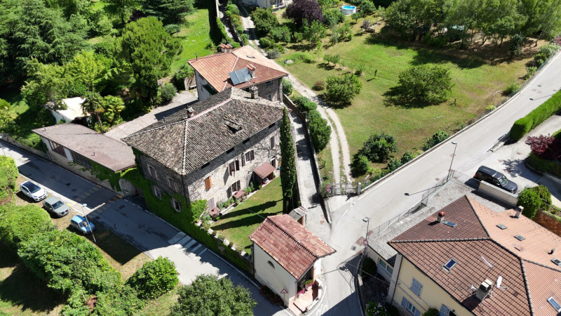 L’accesso alla villa avviene attraverso un cancello automatico che si apre con discrezione sul cortile principale, introducendo subito alla magia del luogo. L’impatto visivo è forte: l’architettura della villa si integra perfettamente con il verde circostante, creando un’armonia rara tra costruito e paesaggio. A ll’interno del cortile si trova anche uno spazio coperto che può essere utilizzato come location per eventi o come autorimessa, completando così la funzionalità della proprietà senza alterarne l’eleganza.La villa si articola in due unità indipendenti.