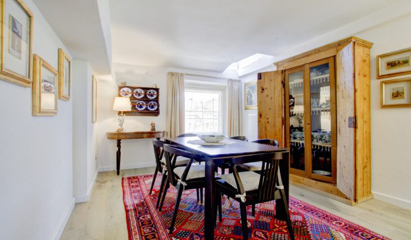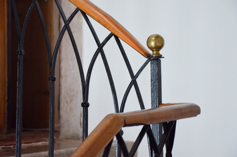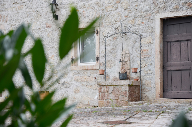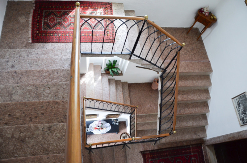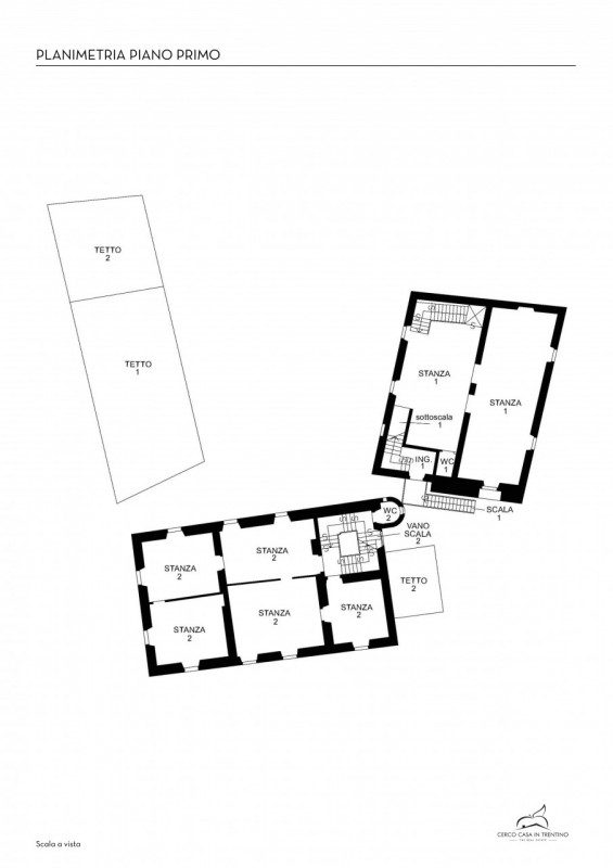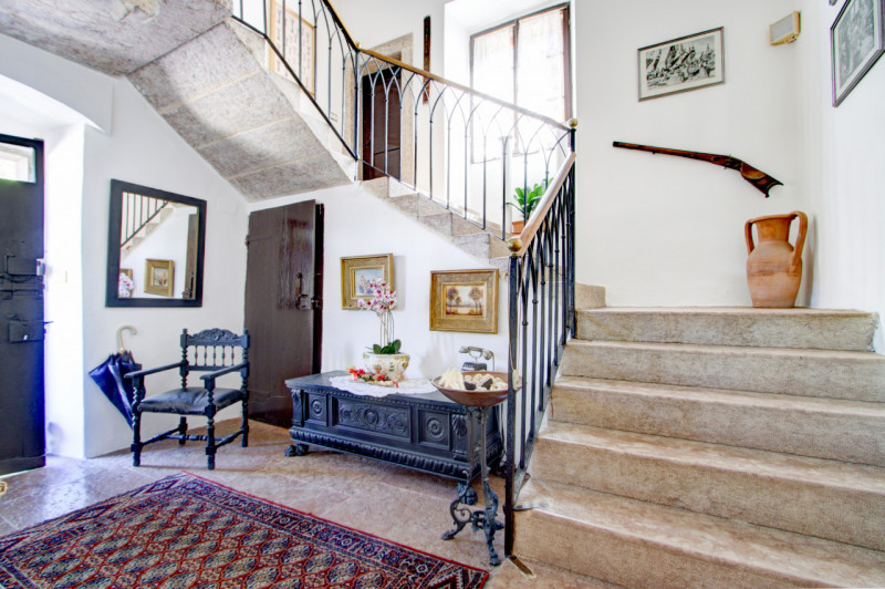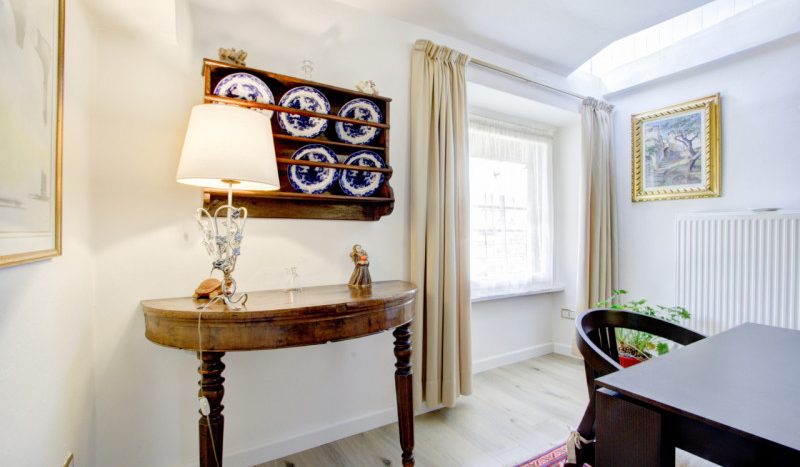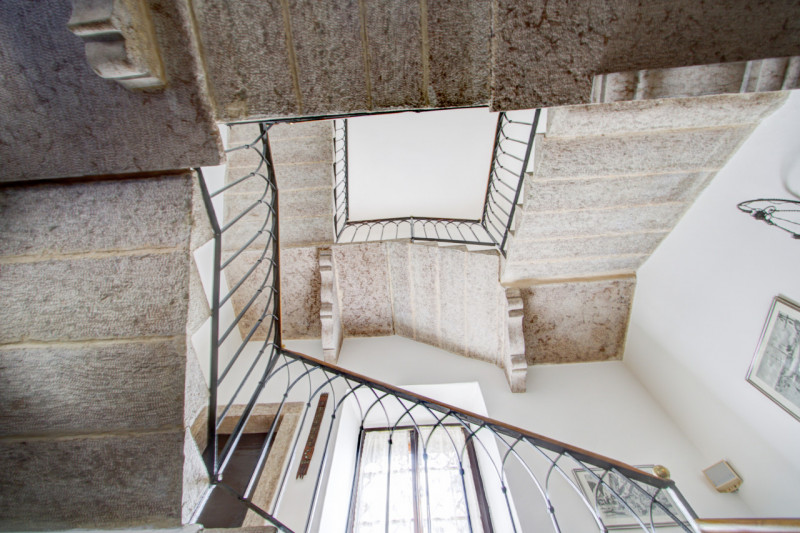 La prima, rivolta a sud, si sviluppa su quattro livelli. Al piano terra si trovano le antiche cantine, ampie e affascinanti, con un pozzo centrale che accoglie i visitatori appena varcata la soglia. Dal cortile, una scala esterna conduce al piano rialzato, dove si apre l’ingresso principale. Qui, una scenografica scala in pietra introduce agli ambienti di rappresentanza: la cucina, che si affaccia direttamente sul giardino privato, un ampio salotto e due camere, oggi utilizzate anch’esse come spazi di accoglienza in stile salotto, come in passato era consuetudine nelle dimore nobiliari. Al primo piano si trovano tre stanze luminose e di generose dimensioni; una di queste è attualmente adibita a disbrigo con funzione di piccolo salotto o studio, offrendo così uno spazio versatile e intimo. Salendo ancora, si accede al piano mansardato, dove trova spazio un appartamento recentemente ristrutturato, intimo e riservato.