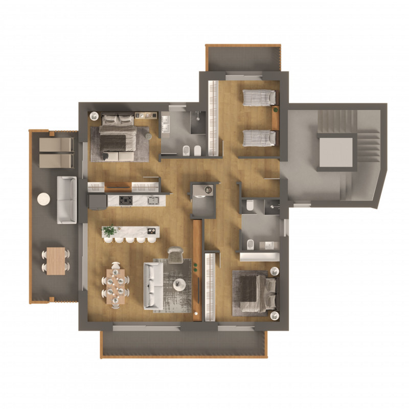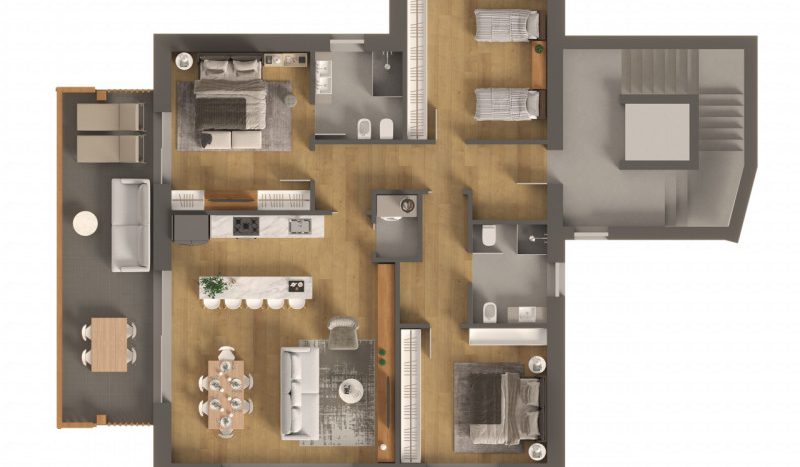 L’appartamento quadrilocale proposto si sviluppa su una superficie generosa di circa 150 mq ed è stato concepito per offrire massimo comfort abitativo e qualità degli spazi. La proprietà include un’ampia e luminosa zona living con cucina open space perfetta per intrattenere ospiti; tre camere da letto spaziose ideali per famiglie o gruppi; due bagni rifiniti con materiali pregiati pensati per offrire relax dopo una giornata sulle piste o nei sentieri montani.