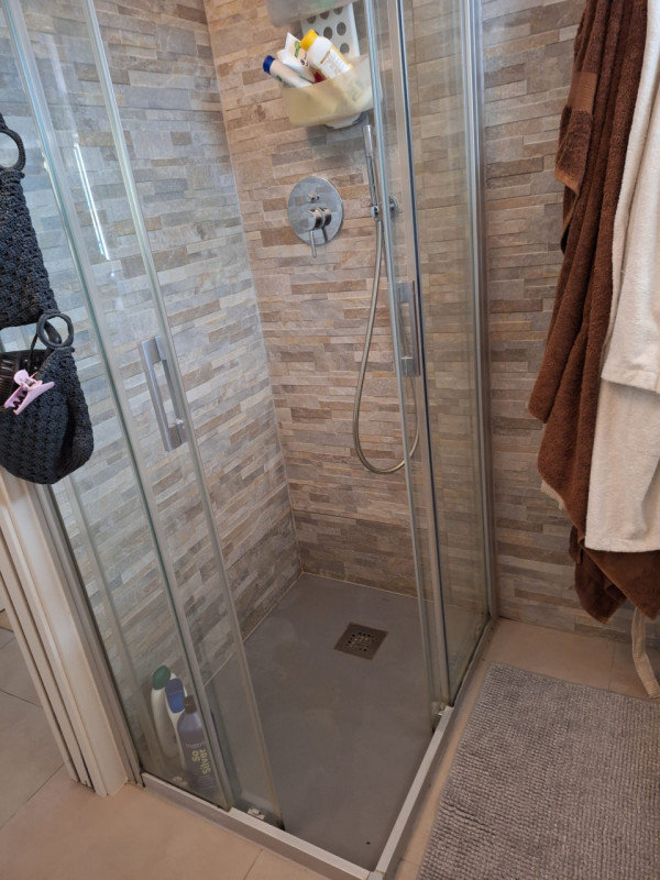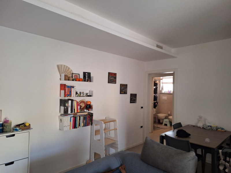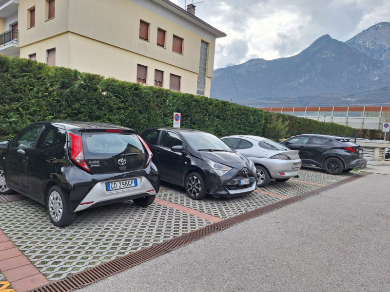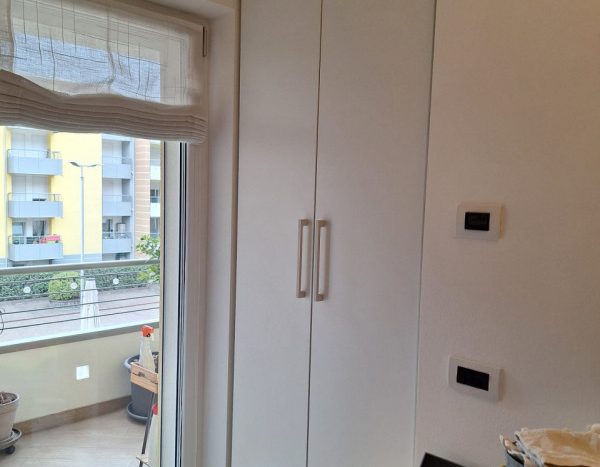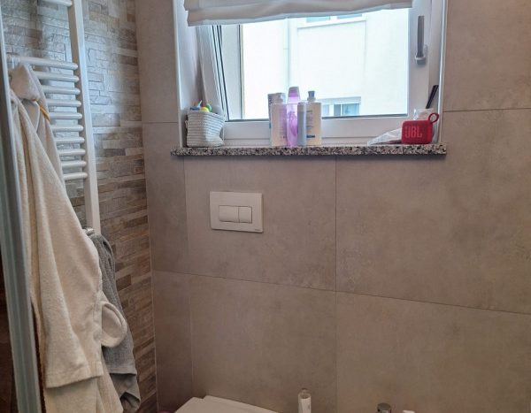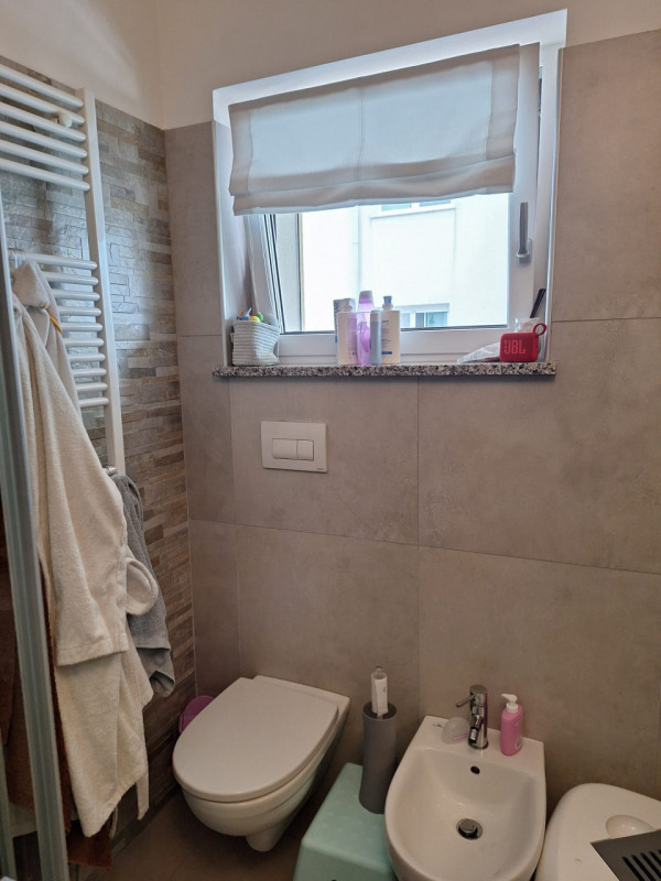 Completano l’appartamento un disbrigo notte funzionale e un bagno finestrato attrezzato con doccia. Inoltre, la proprietà dispone di un garage nel piano interrato, cinque posti auto esterni in comproprietà e ampia area parcheggio condominiale.