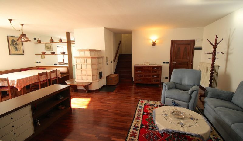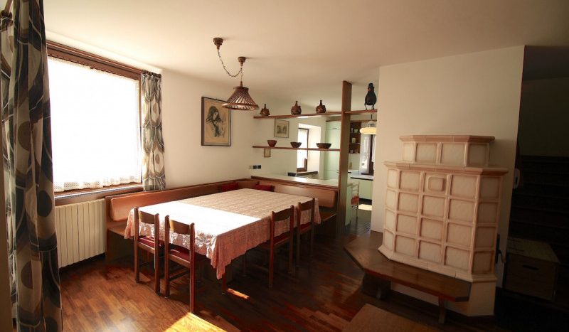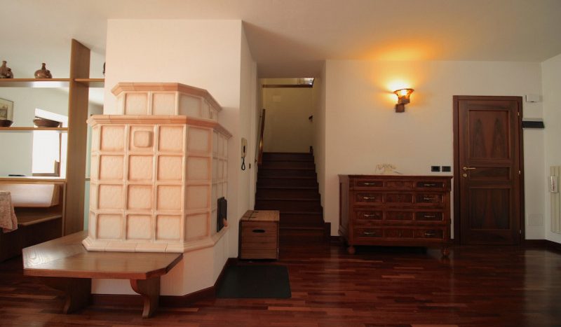 -Stufa ad ole tradizionale in maiolica, installata nell’ampio salone in posizione centrale, ideale per riscaldare gran parte della casa.