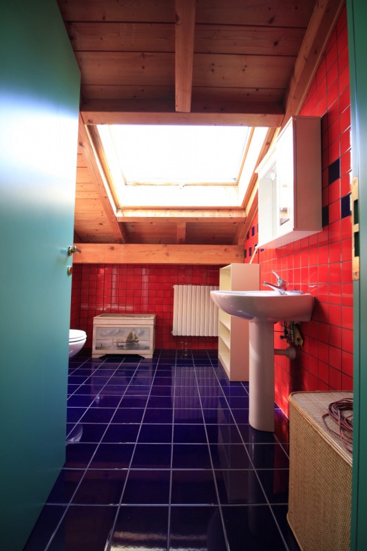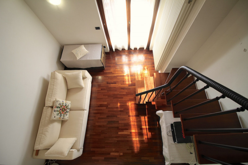 Dal soggiorno si accede, tramite scala interna, al piano mansardato, dove trovano spazio tre stanze, tutte servite da un’ampia terrazza esposta a sud, un soppalco e un secondo bagno finestrato.