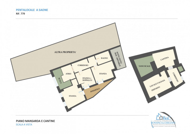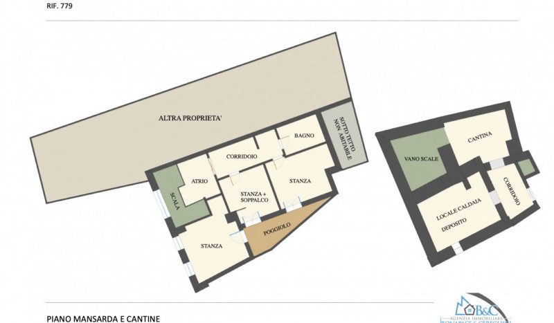 -Ampie superfici (piano seminterrato 63 mq – secondo piano 135 mq – piano mansarda 78 mq – poggioli 18 mq)