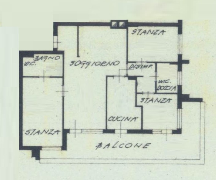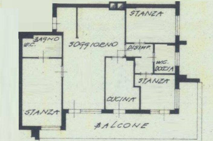 Composizione: 3 stanze + Soggiorno con cottura, due bagni, terrazza, cantina, garage.