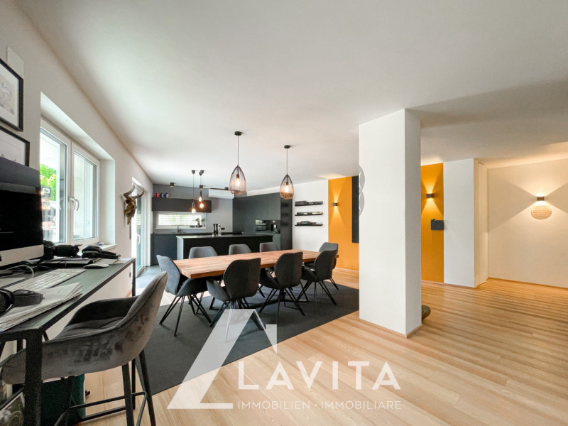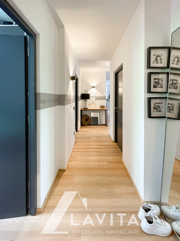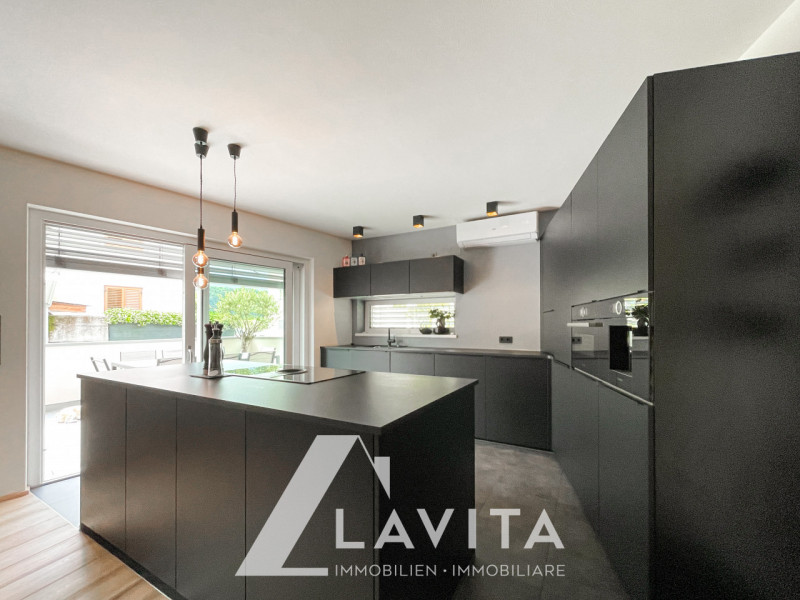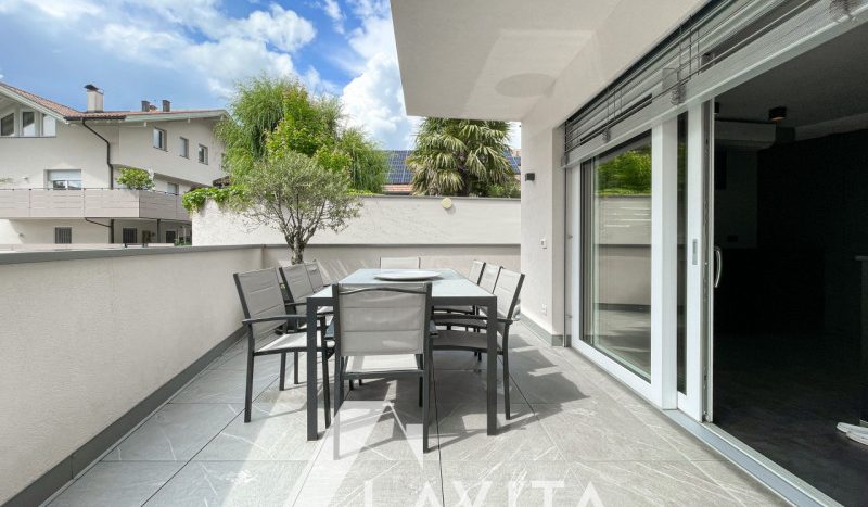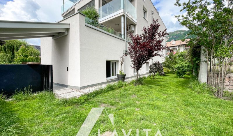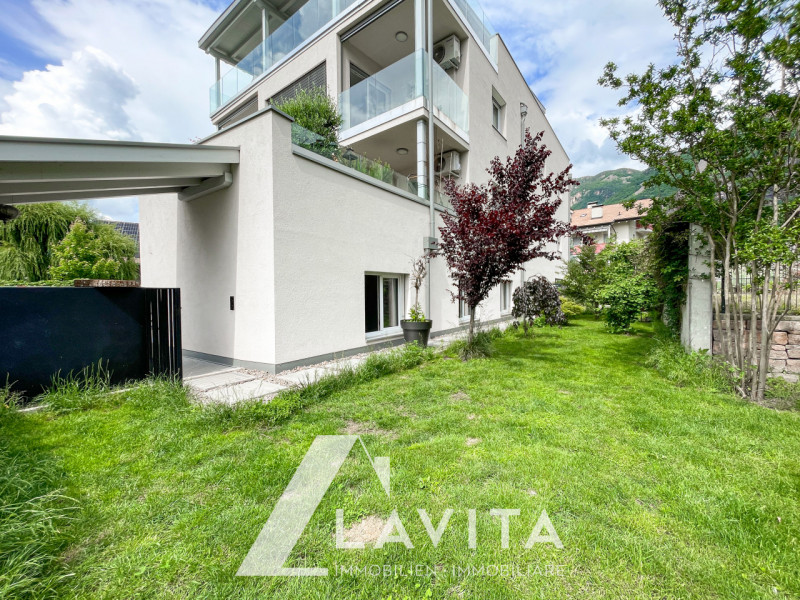 Con incarico in esclusiva: In una zona tranquilla e ben servita, al piano terra di una palazzina con solo 6 appartamenti costruita nuova secondo lo standard Casaclima A nel 2019, proponiamo questo pentalocale con ampio giardino e terrazza, unico nel suo genere.