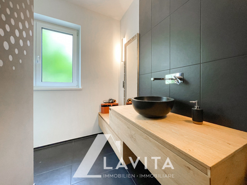 Zusätzlich verfügt die Immobilie über einen großen Kellerraum von 23 m² mit Waschküche im Untergeschoss, der im Preis inbegriffen ist und in eine Taverne umgewandelt werden kann.