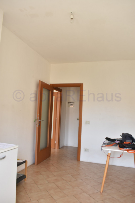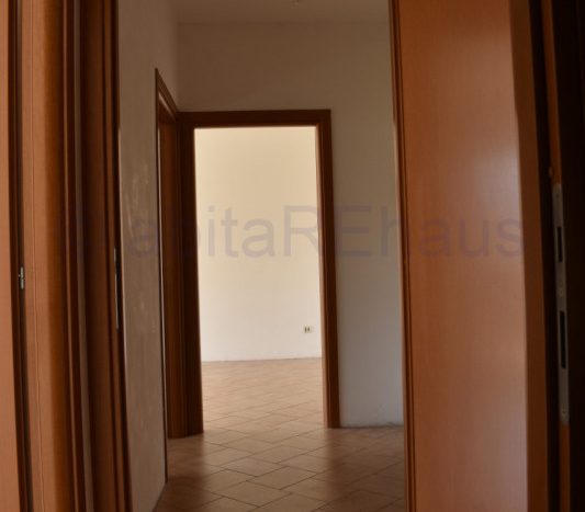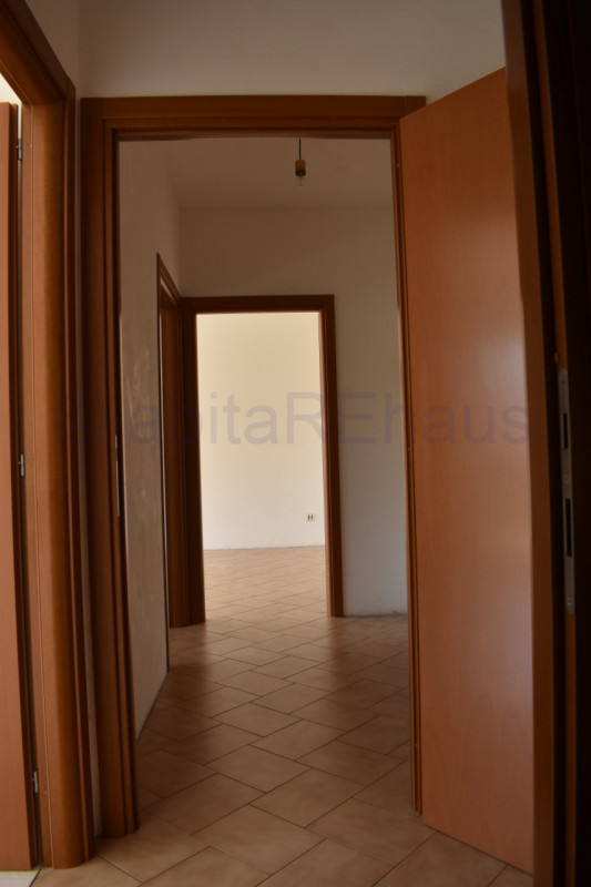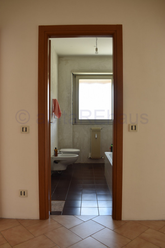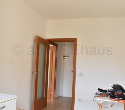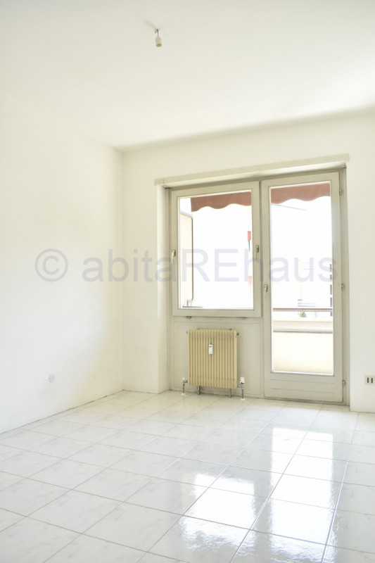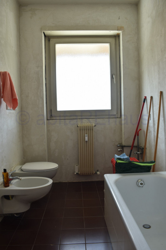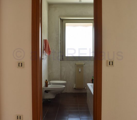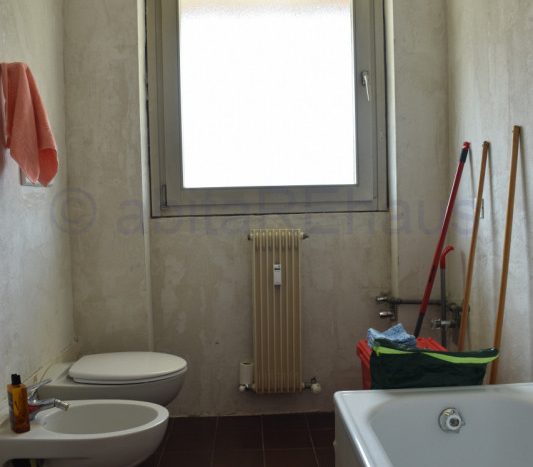 Questo appartamento si compone di un ampio ingresso, soggiorno e cucina abitabile separata e ampio balcone su tutto il fonte Ovest. Le tre stanze sono sui due lati dell’appartamento, una camera con disimpegno e WC doccia sul lato sud della abitazione e le altre due camere, sempre spaziose e versatili sul lato opposto, separate dal living da un secondo disimpegno, dove si trova anche il secondo bagno con vasca e finestrato. I bagni così come altri dettagli sono allo stato grezzo da rifinire, per una ristrutturazione iniziata ed abbandonata.