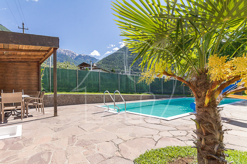 Gli interni colpiscono per l’accogliente reception, il bar e le piacevoli sale da pranzo. Spiccano in particolare l’autentica stube contadina per circa 25 persone e l’ampio giardino d’inverno, ideale per eventi fino a 40 ospiti. La licenza per il ristorante è già presente e offre spazio a nuovi concetti gastronomici, supportati da una cucina professionale completamente attrezzata. Per il relax, la zona wellness comprende una piscina coperta riscaldata, sauna finlandese e bagno di vapore aromatico, mentre in estate la piscina all’aperto riscaldata con il giardino di 1.500 m² è la meta preferita degli ospiti.