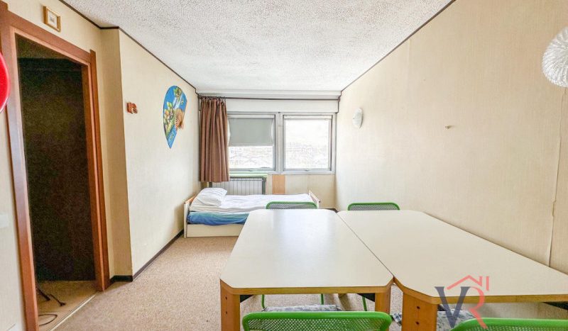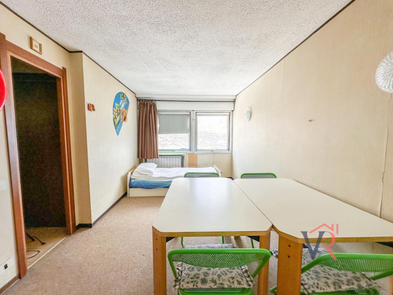 Entrando nell’appartamento, sarai avvolto da un’atmosfera calda e luminosa: la zona living con angolo cottura è un ambiente accogliente pensato per la convivialità, reso unico da una vista privilegiata direttamente sulle piste da sci. Attraverso il disimpegno si accede alla zona notte, dove troverai una camera da letto intima e silenziosa, un pratico armadio a muro salvaspazio e un bagno completo di vasca, ideale per rilassarsi dopo una giornata sulla neve.