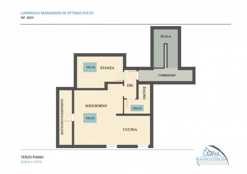 Completano la proposta un comodo ripostiglio sottotetto e un posto auto esterno in piazzale condominiale.