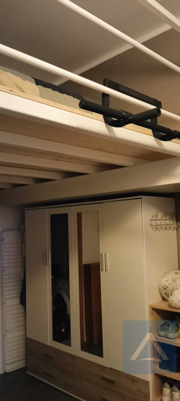 Il bagno finestrato è spazioso e dotato di sanitari moderni. Nella zona notte troviamo un soppalco utilizzabile come camera matrimoniale rialzata, ottimizzando così gli spazi sottostanti dove trovano posto armadi capienti e ulteriori mobili contenitori.