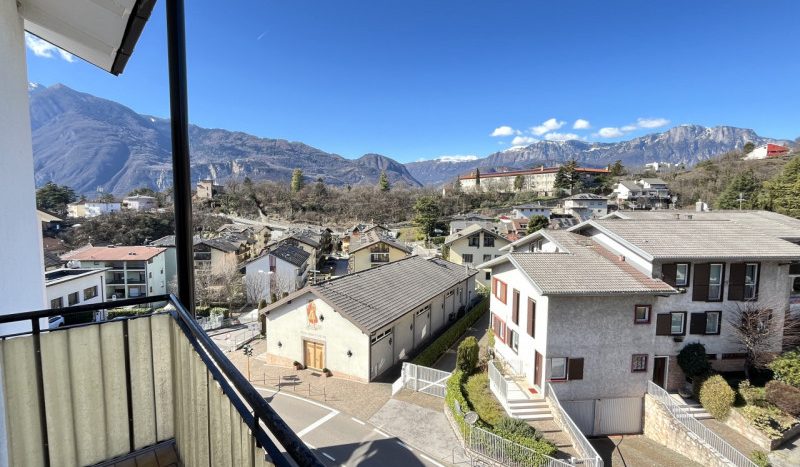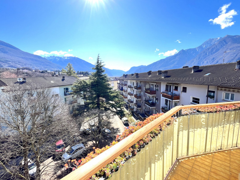 L’appartamento si apre su un atrio d’ingresso che conduce a un ampio soggiorno dotato di caminetto. Il soggiorno è impreziosito da un lungo balcone ad angolo che regala incantevoli viste sulla vallata circostante e sul Monte Bondone. La cucina è finestrata e separata dalla zona giorno, mentre le tre camere matrimoniali offrono spazio abbondante per tutta la famiglia; una delle stanze dispone anche di accesso diretto a un secondo balcone.