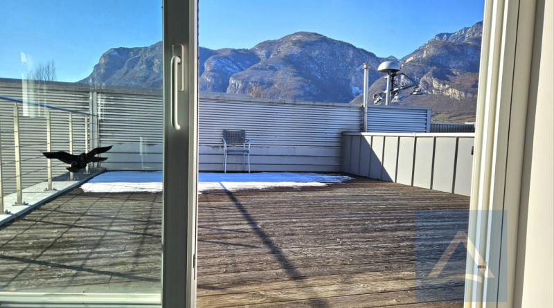 Un elemento distintivo è l’ampia terrazza privata esterna, ideale sia come spazio relax che per eventi aziendali all’aperto con vista impareggiabile sul panorama alpino. Il contesto professionale dello stabile assicura tranquillità e massima efficienza logistica grazie anche ai parcheggi nelle immediate vicinanze.