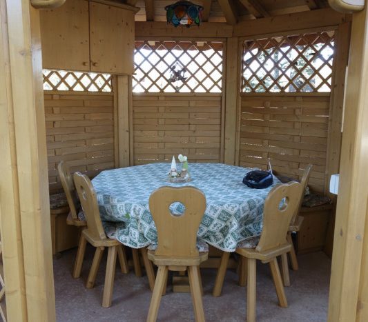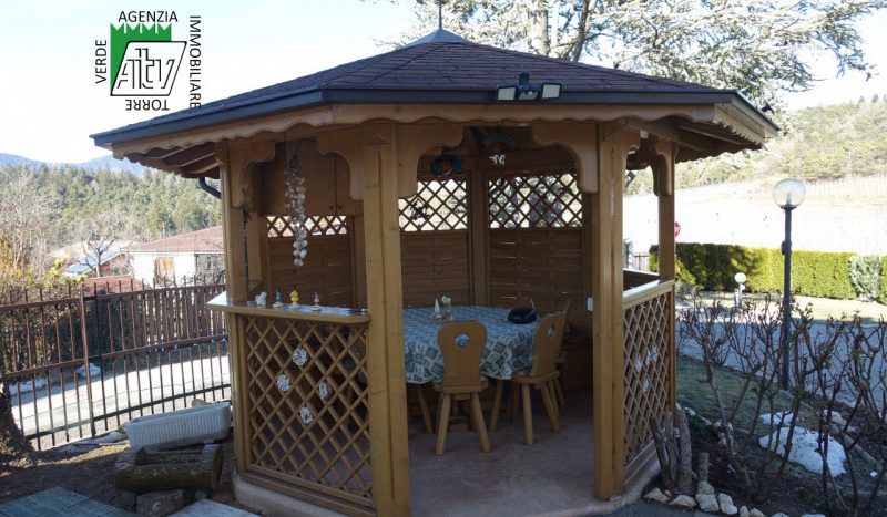 Il giradino/piazzale esterno ha una superficie di circa 650 mq ed è presente anche un bellissimo gazebo in legno.