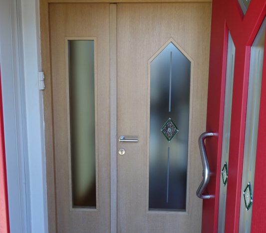 Il primo appartamento, posizionato al piano rialzato, è composto da ingresso, soggiorno, cucina abitabile, 2 stanze da letto, bagno finestrato. Dal soggiorno è possibile accedere al giardino esterno.